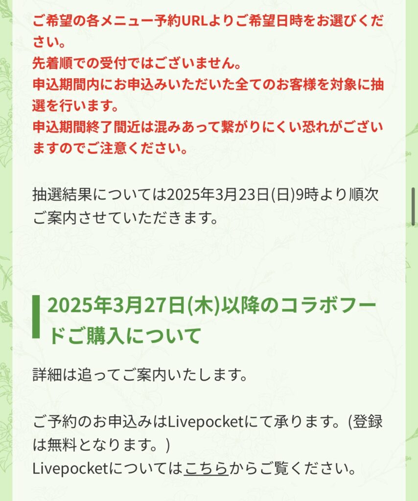 ※コラボフードのご購入は2025年3月24日(月)~3月26日(水)までは抽選予約
