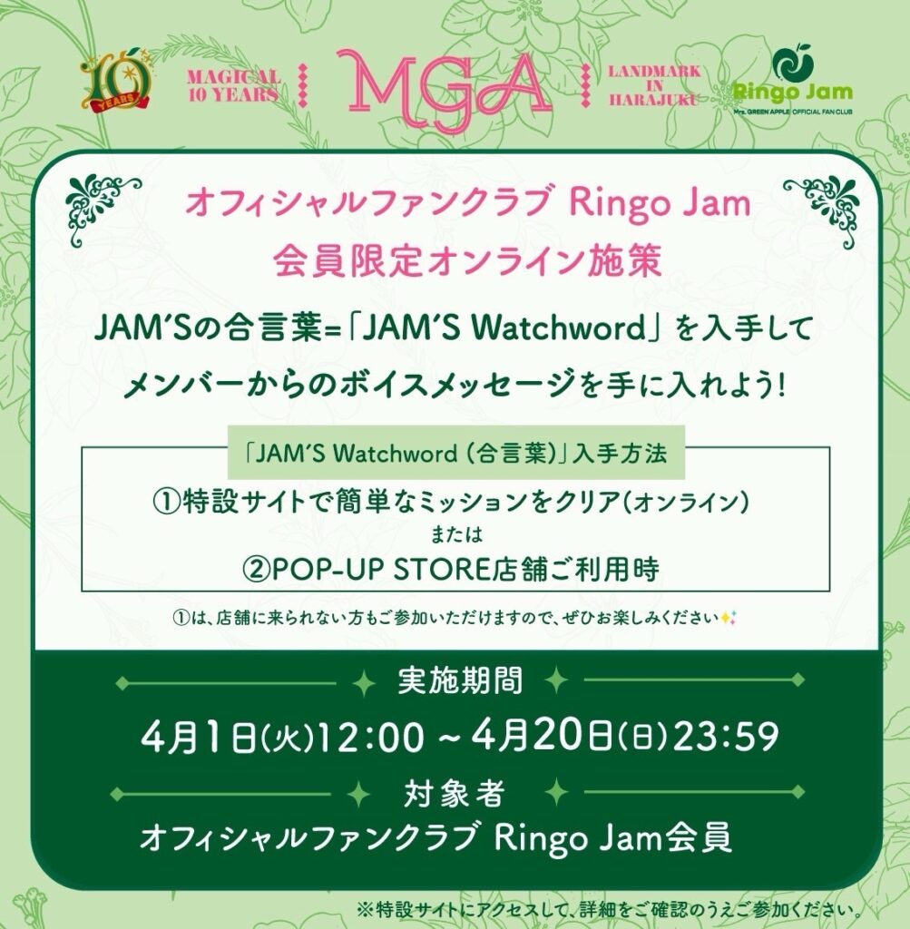 JAM’Sの合言葉=「JAM’S Watchword」が必要となります🔑