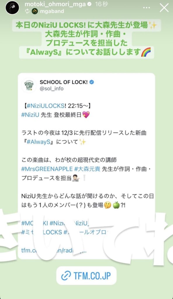 NiziU LOCKS!に大森さんが登場!